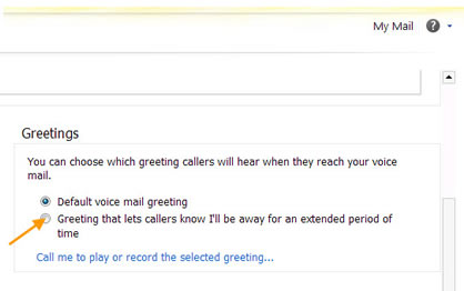 Use Outlook on the Web to activate an Out of Office greeting (rather than your regular greeting) for the telephone or to switch back to your regular telephone greeting.