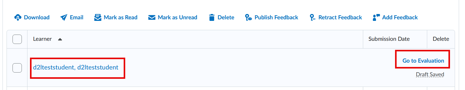 - Once the evaluation is completed for each student, click on Save Draft. Note: If rubric is used to score, it is not necessary to enter a score in the field. Click the arrow in the upper right-hand corner to evaluate next student. Click Back to Folder Submissions to Publish All once grading is complete. It is possible to add the same feedback to all students by selecting Add Feedback to All. If the submission was already published, the feedback would be overwritten with the new feedback. To retract all feedback, select Retract All from the More Actions menu.
