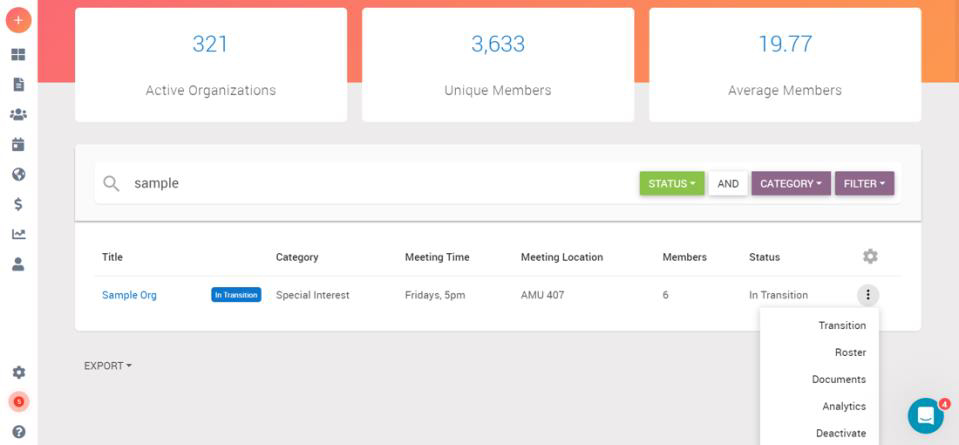 Part of maintaining active status as a recognized student organization on campus is a yearly renewal process in which your organization does the following: