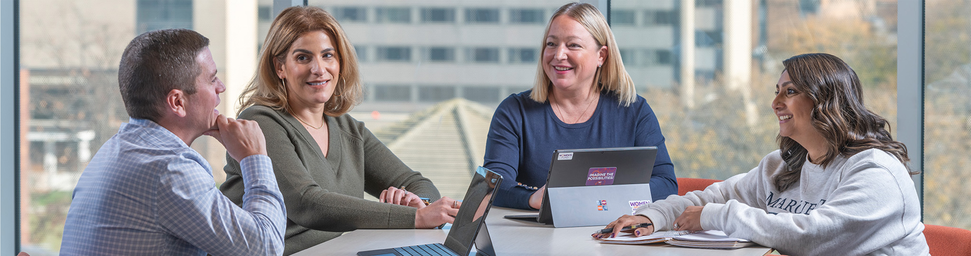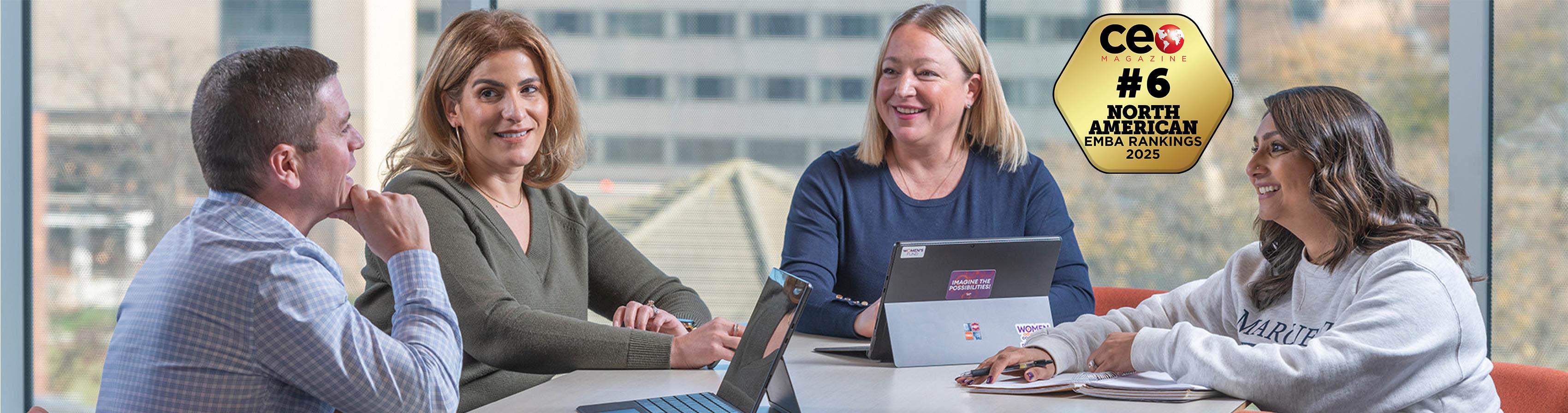 Top instructors. Small classes. Applied learning. A close-knit community. The Marquette Executive MBA experience advances each student’s growth and goals through a curriculum that prioritizes team-based experiences, ethical leadership, interdisciplinary curiosity, and a desire to create positive changes in the world. Executive MBA program highlights include: