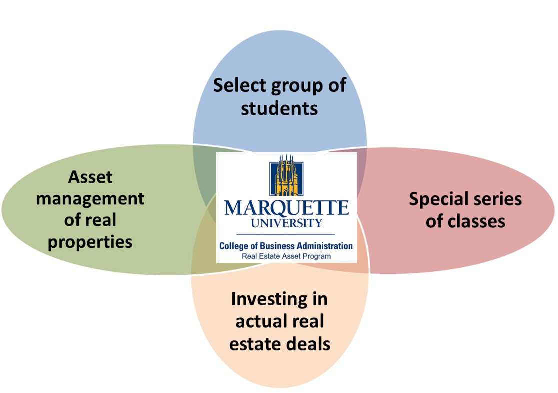 Marquette real estate majors in their junior year are eligible to apply to participate in REAP. REAP’s mission is to provide an applied-learning environment for a select group of real estate program students in which they gain real-world experience in investment sourcing, underwriting, closing, management, and investor reporting. Participants will make investment recommendations to the investment committee, with oversight of a more than $2 million pledged-fund of equity for investment, based on their analysis.
