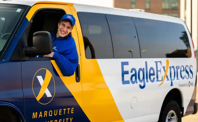 • EagleExpress, our after-hours safe rides app, makes transportation on campus easy to access.