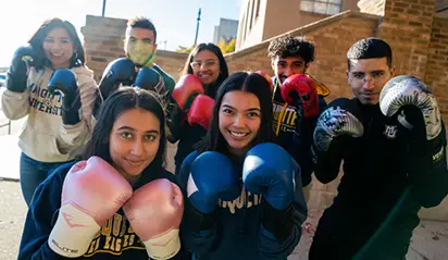 Students showing off their boxing gloves