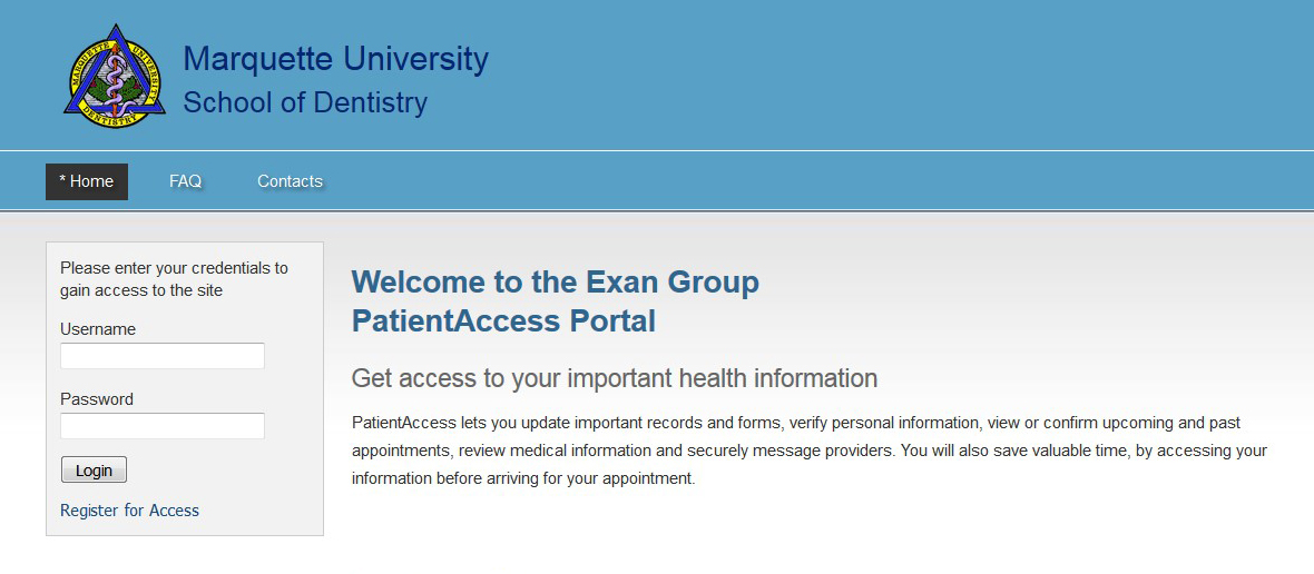 The Marquette University School of Dentistry MyDental provides access for patients to view, download, and transmit their information.