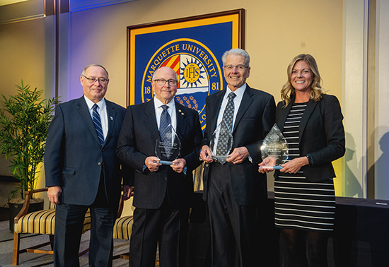 Dr. Arndt Guentsch, Dr. Lobat Tayebi, Dr. Christopher Okunseri, Dr. David Berzins and Dr. Morteza Rasoulianboroujeni, Marquette University School of Dentistry faculty and staff, were recognized at the Marquette Innovators Celebration, for research sponsored by corporate partners, invention disclosures, patents and licensing agreements.