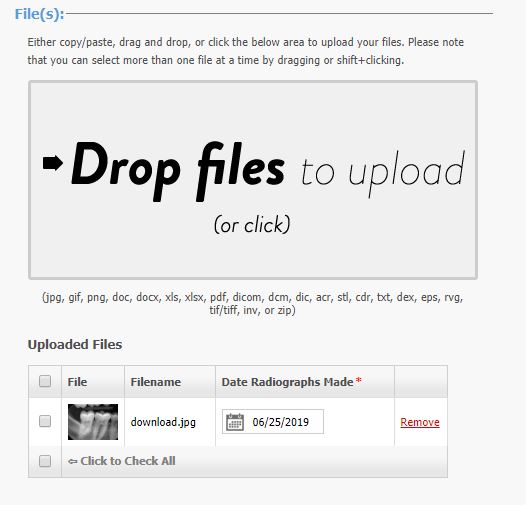 6. Once the selected radiographs from your computer are uploaded, make sure to enter the Date the Radiographs were made. This is a required field*.