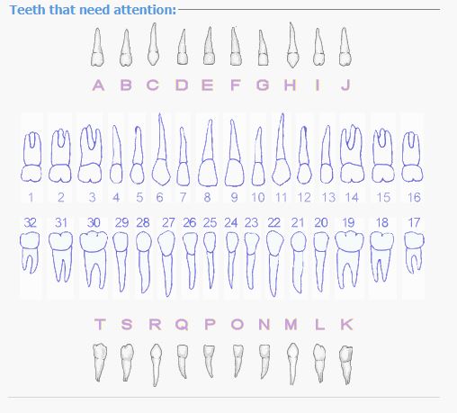 7. Next select the tooth/teeth that need attention on the tooth chart.