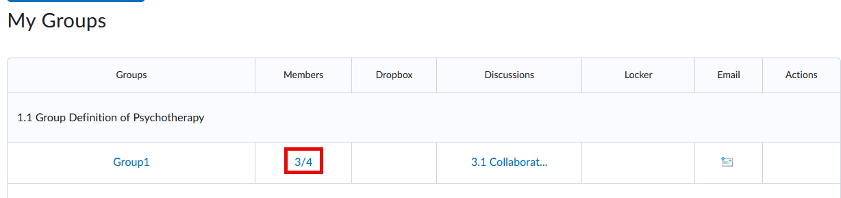 - To view the members in your group, click the number (e.g., 3/4) listed under the Members column.