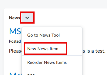 Important: When copying an entire course or selected news item(s) to another course site, the Send Email Copy checkbox resets. Before publishing, reselect the checkbox if needed.