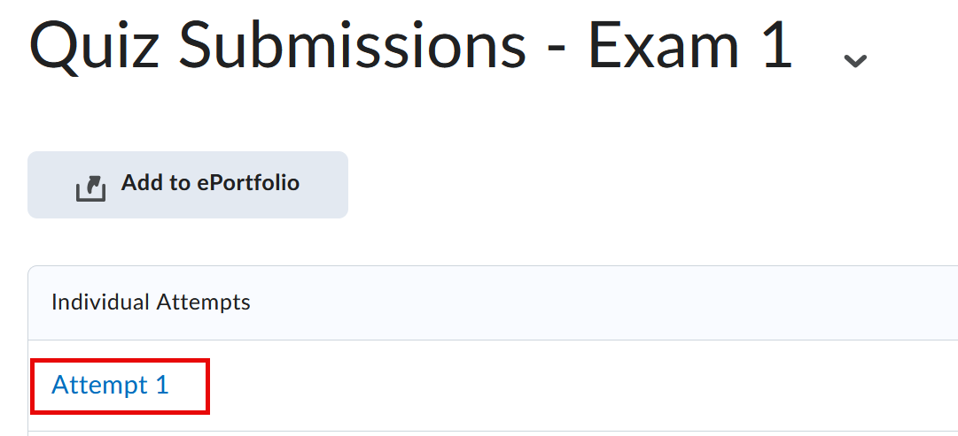 - Select the attempt link to view the feedback for that quiz or exam. There may be multiple attempts listed.