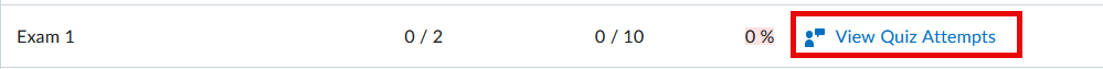 - Click View Quiz Attempts link found under the Comments and Assessments column.