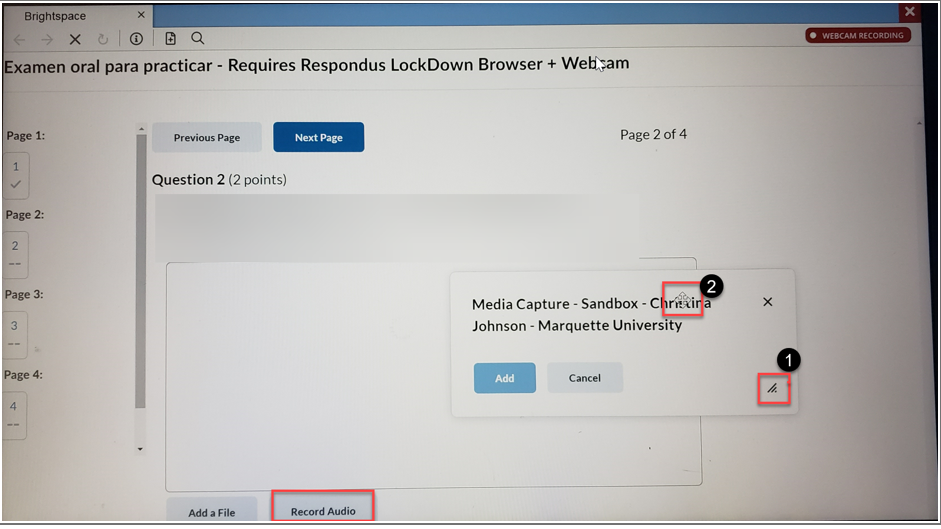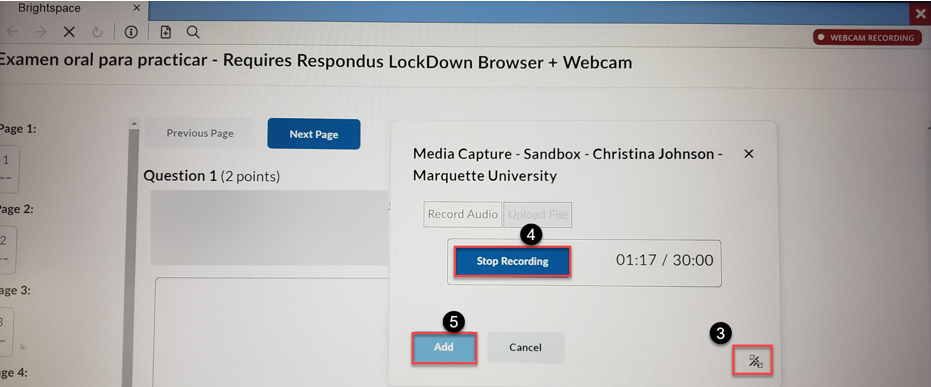 If given a quiz with one question per page, the student has the ability to minimize and move the Media Capture window to view the question.