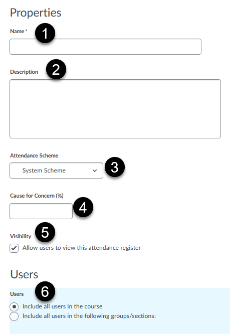 The system default is set to allow users to view the attendance register [5]. Deselect the checkbox if you prefer it hidden.