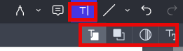 Color options for text and background in text box along with options for font style and size and left, right, center justification are located under Text box icon.