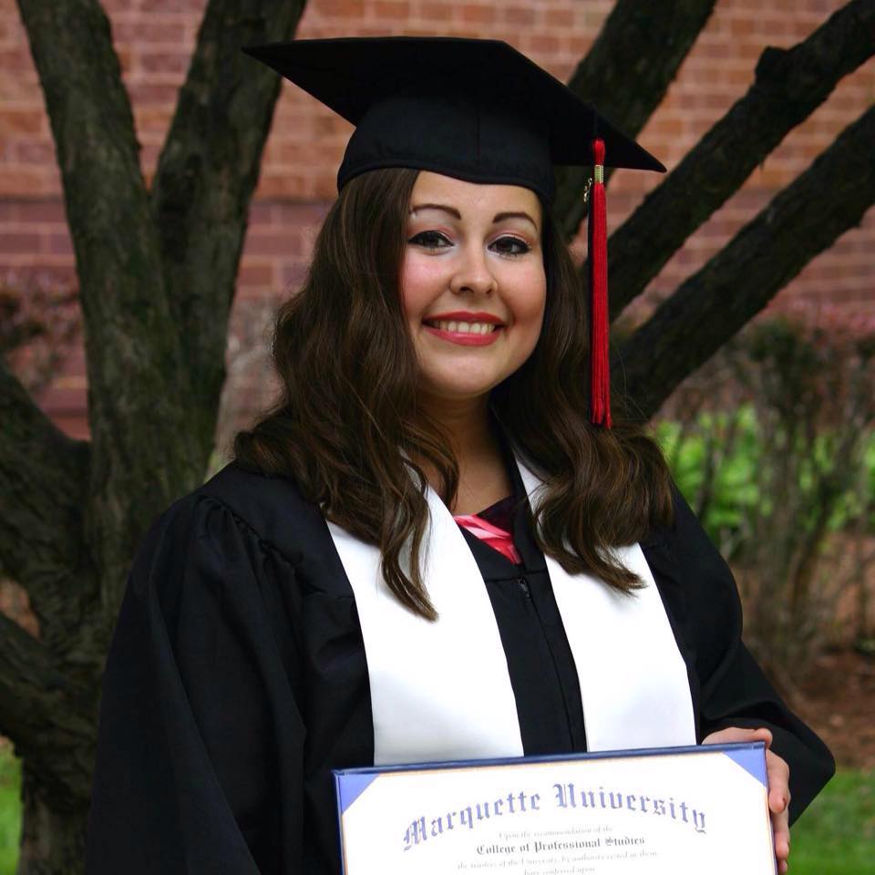 La educación jesuita que he recibido en Marquette me dio un mayor entendimiento de quién soy. Cada clase y cada objetivo educativo, me abrieron las puertas al aprendizaje para toda la vida. Desde el momento que fui admitida, y con la ayuda de las relaciones con personal docente y el currículo rigoroso en el área de desarrollo de liderazgo, descubrí mis fortalezas y habilidades. Más significativamente, tuve un grupo de compañeros de clase que se sentían seguros de si mismos y compartían sus perspectivas en clase, y así desarrollé mi conciencia, conocimiento y aplicación diaria. Estos autoconocimientos (o métodos de aprendizaje) han sido entretejidos en la manera en que vivo hoy y continúan recordándome que el desarrollo de un sinfín de experiencias me va a ayudar a hacer una diferencia en el mundo, a través de muchos caminos y en muchas formas. Dios me ha dado la oportunidad de hacer una diferencia, y eso es mi propósito.
