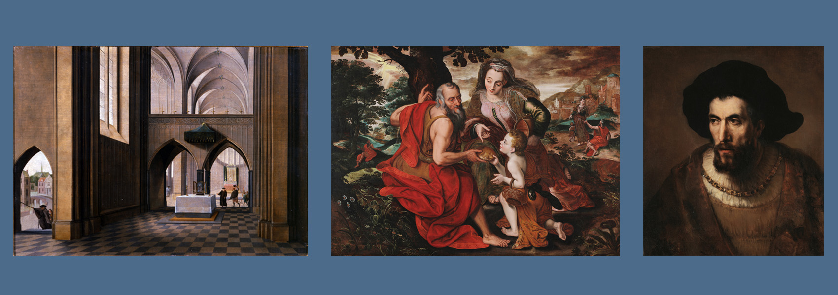 La cuestión del papel del arte en la vida devocional de los cristianos europeos dio un giro dramático en 1566, cuando grupos de ciudadanos reformistas destruyeron imágenes sagradas en las iglesias de los Países Bajos (los actuales Países Bajos, Bélgica y Luxemburgo). Los debates religiosos y políticos que ocurrieron después no sólo dieron lugar a la creación de la República Neerlandesa, sino que a su vez transformaron las expectativas profesionales de los artistas que trabajaban en los territorios controlados tanto por católicos como por protestantes. Las obras de arte religiosas adquirieron nuevas dimensiones en su complejidad psicológica y en su respuesta a las reacciones sensoriales y emotivas de los espectadores. Simultáneamente, los temas que antes habían sido menos valorados, como los paisajes y el arte de hacer retratos, adquirieron nueva importancia. Esta exposición se basa en la colección de arte neerlandés y flamenco propiedad del Museo Haggerty para explorar las respuestas innovadoras de los artistas a los cambios que reconfiguraron la identidad comunitaria en los Países Bajos entre 1560 y 1675.