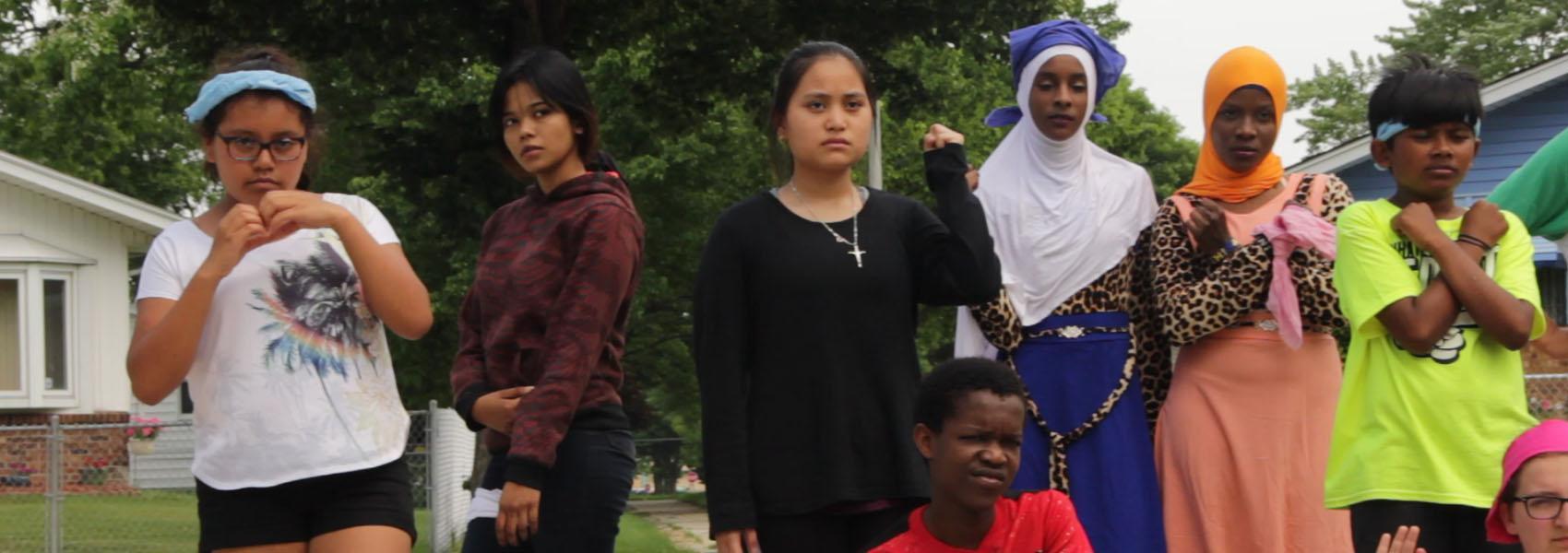 Initiated in 2015, (Re)Housing the American Dream has continuously and simultaneously existed inside and outside of the museum’s walls. Each year, the same group of refugee and American-born children—introduced by Leenaars during her artist residencies at the Milwaukee Academy of Chinese Language International Newcomer Center and Highland Community School—have collaboratively developed a theme to explore. An annual summer camp, devised by Leenaars and informed by characteristic elements of her hybrid social, performance, and video practice, has served as the forum for the group’s critical engagement with complex social and civic issues. The films produced during the summer camp—ranging from traditional interviews to more poetic three-channel art installations—have been exhibited at the Haggerty each fall.