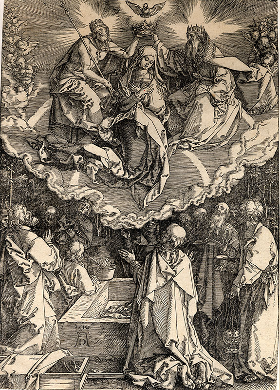 Albrecht Durer (German, 1471 – 1528), Assumption and Coronation of Virgin (from Life of the Virgin), 1510. Woodcut, 11 1/2 x 8 1/8 in. Gift of Mrs. Otto H. Falk, Collection of the Haggerty Museum of Art, Marquette University, 56.10.