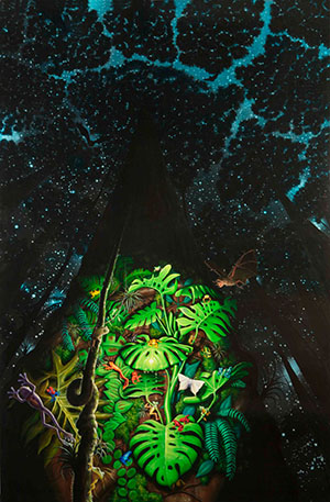 Alexis Rockman (American, b. 1962), Kapok Tree, 1995. Oil on panel, 96 x 63 3/4 in. Gift of Peter Norton, Collection of the Haggerty Museum of Art, Marquette University, 2001.13.7.