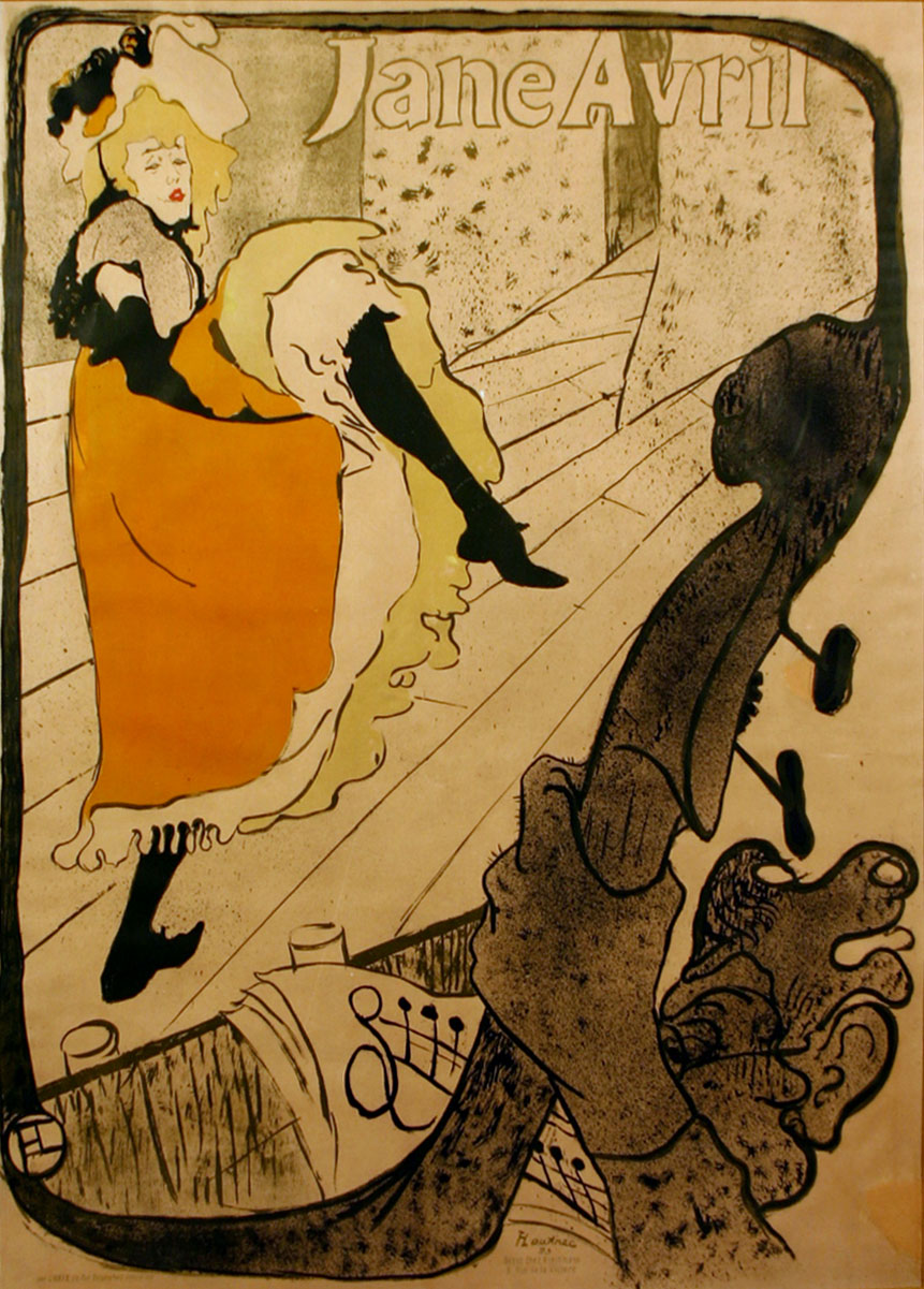 Henri de Toulouse-Lautrec (French, 1864 – 1901), Jane Avril, 1895. Lithograph, 48 1/8 x 34 ¼ in (122.24 x 86.99 cm). Gift of Sandra and Sheldon Ausman, Collection of the Haggerty Museum of Art, Marquette University, 96.21.5.