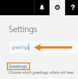In the top right, click or tap gear icon and enter Greetings in the search box under Settings.