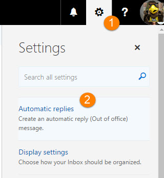 The Settings dropdown menu will open. Click or tap Set Automatic Replies.