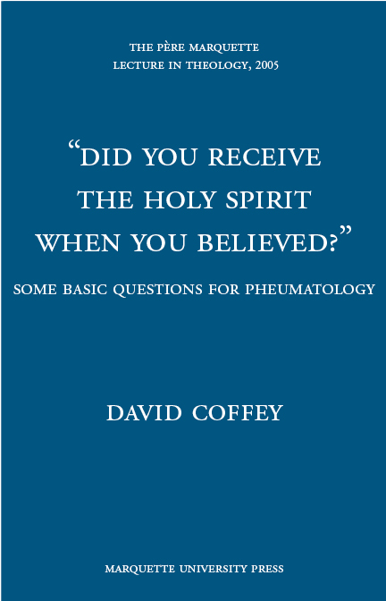 The occasion of this lecture also marks the end of Father Coffey’s tenure as the holder of the Kelly Chair at Marquette University. He will be sorely missed by those of us who have come to know and value him as a colleague and friend, as well as by the students who have benefited from his great learning and keen insight. In the following essay, the reader will instantly discern the tight argumentation and intellectual tenacity that have marked Coffey’s work and made him a favorite among his peers. At the same time, even as he works to illuminate the Trinitarian realities of mutual love, appropriation, common action, and the like, one will observe his profound reverence for the mystery of the Triune God. As a guide for this exploration of the agency of the Holy Spirit, we could hardly ask for one with better knowledge of the terrain or a surer step than our own David Coffey. We thank him for taking us along on the journey.