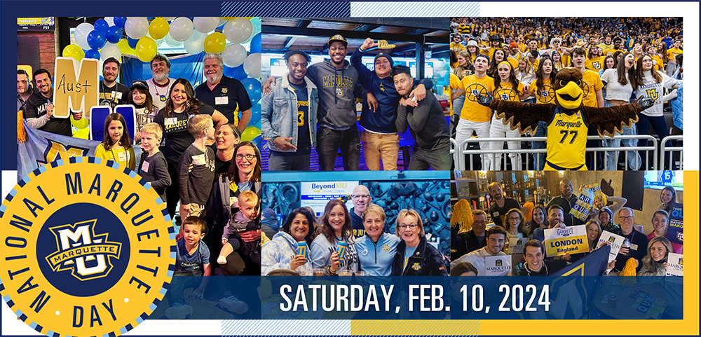 Celebrate the spirit of Marquette by sharing your pride on Facebook, X, LinkedIn, and Instagram. Post your messages and images before, during, and after National Marquette Day Weekend using #NationalMarquetteDay and tagging @MarquetteAlumni.