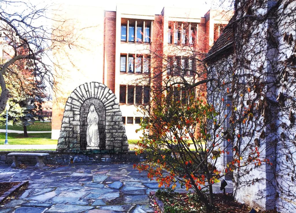 Conceptual image of the grotto of the Blessed Virgin Mary behind St. Joan of Arc Chapel to be installed by the 2018-19 academic year.