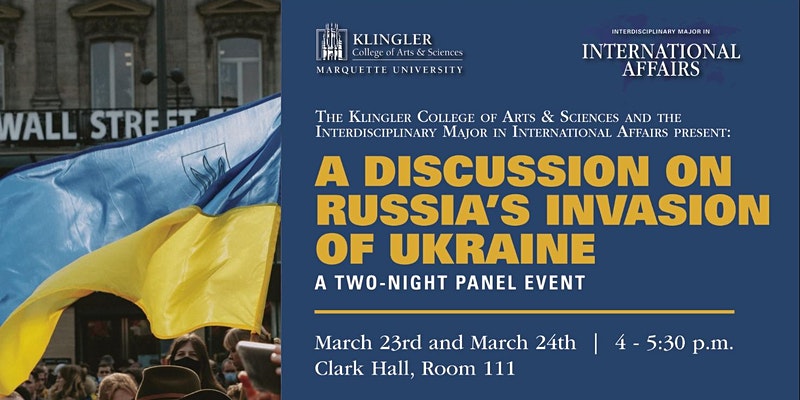 Marquette Klingler College of Arts and Sciences hosting two-day panel on Russia's invasion of Ukraine, March 23-24