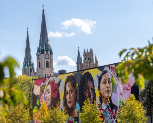 The “Our Roots Say That We’re Sisters” mural was installed on campus celebrating diversity and racial equity. A Mural Committee invited seven local Black, Indigenous and People of Color (BIPOC) male and female artists to submit proposals and “Our Roots” was the winning submission in a vote that engaged more than 1,400 members of the Marquette community.