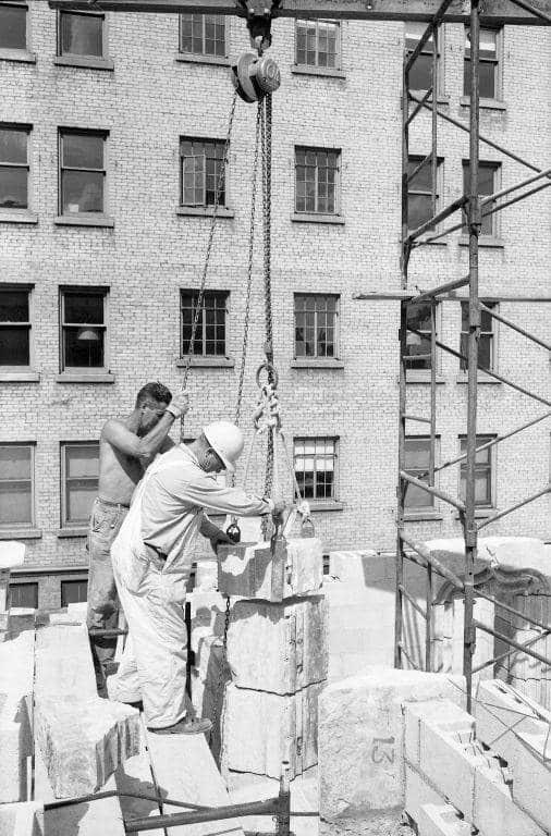 Workers spent nine months carefully taking apart the chapel on Long Island and marking each of its stones before loading them onto a fleet of semis bound for Milwaukee. The first shipment of the twice disassembled chapel arrived in Milwaukee on January 31, 1965.
