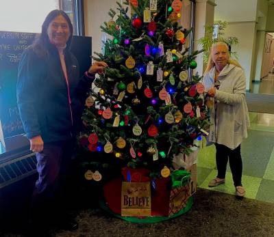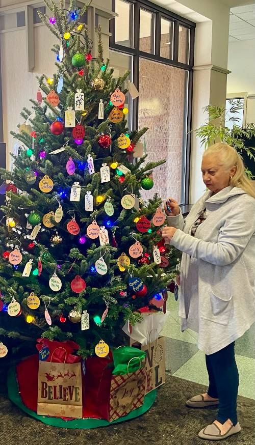 To show gratitude for the support of this year's giving tree, the Staff Senate has erected a holiday tree in the AMU with ornaments naming every department and every person who chose to participate. Thank you!