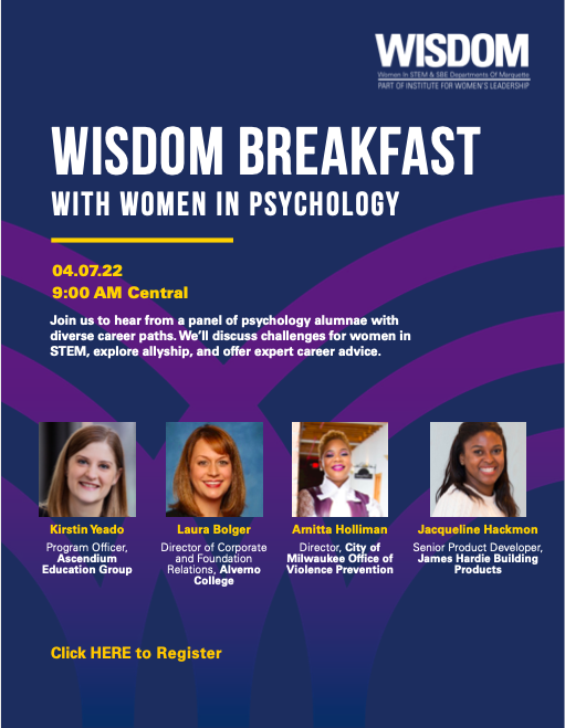 This WISDOM Breakfast event will be for students focused in the fields of biology and/or chemistry and host panelists from Marquette and beyond.