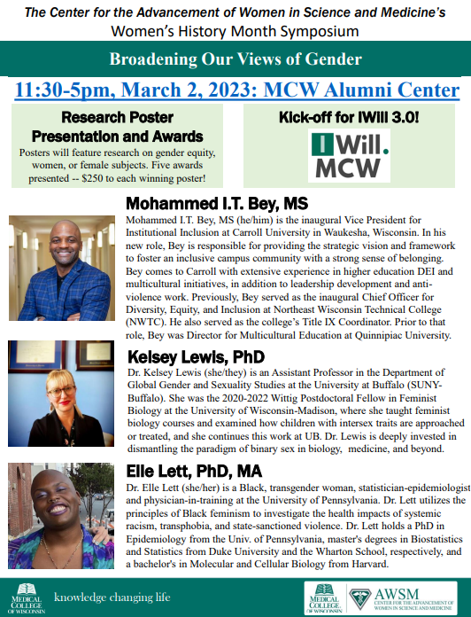 Medical College of Wisconsin (MCW) Women's History Month Symposium Thursday, March 2, 2023 | 11:30 a.m. - 5:00 p.m. | MCW Alumni Center