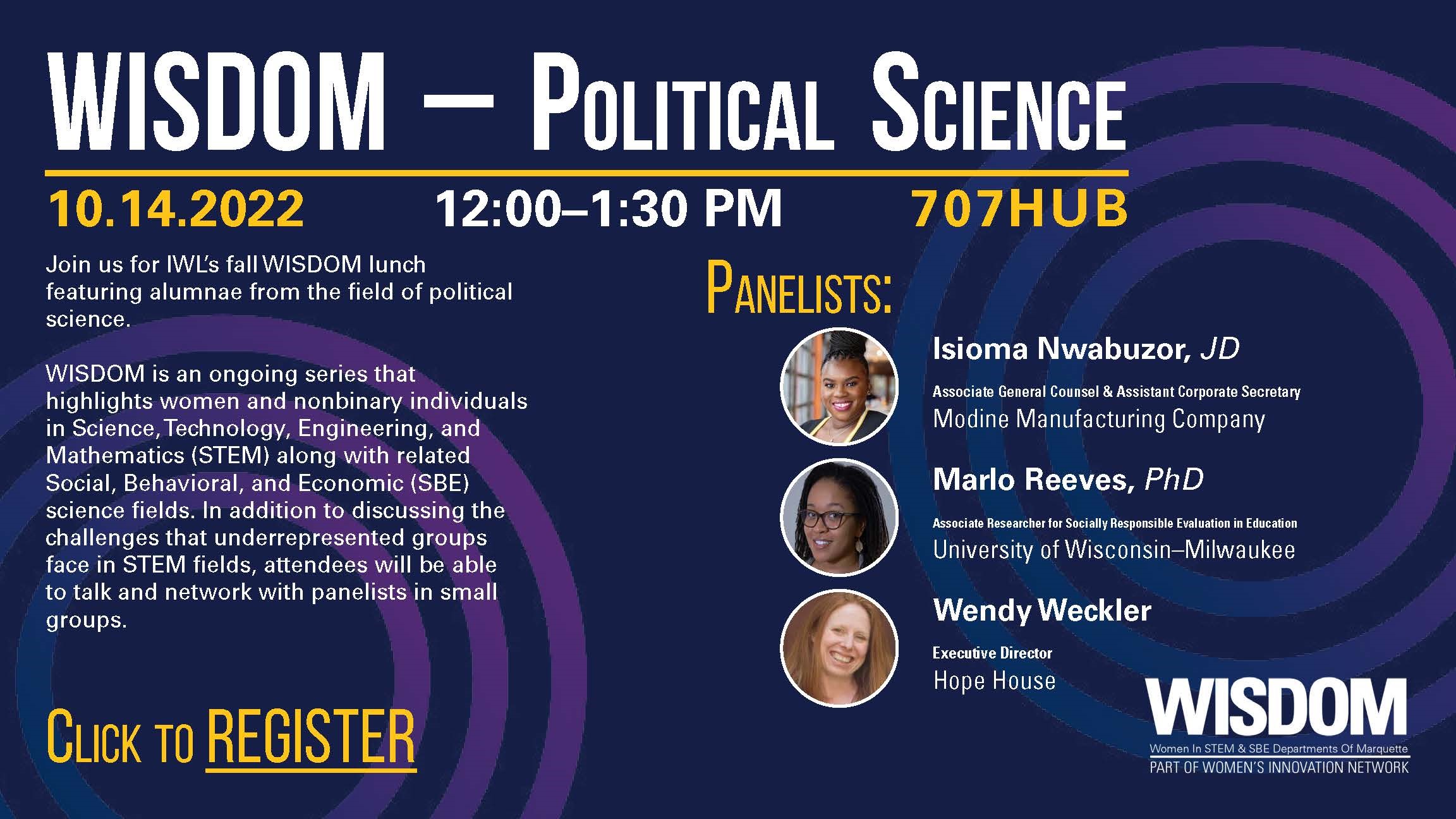 WISDOM Lunch with Women in Political Science Friday, October 14, 2022 | 12:00–1:30 p.m.