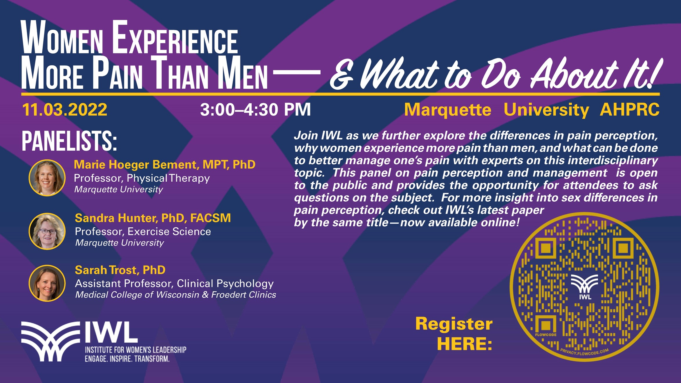 Women Experience More Pain Than Men—And What To Do About It! Thursday, November 3, 2022 | 3:00–4:30 p.m. | AHPRC