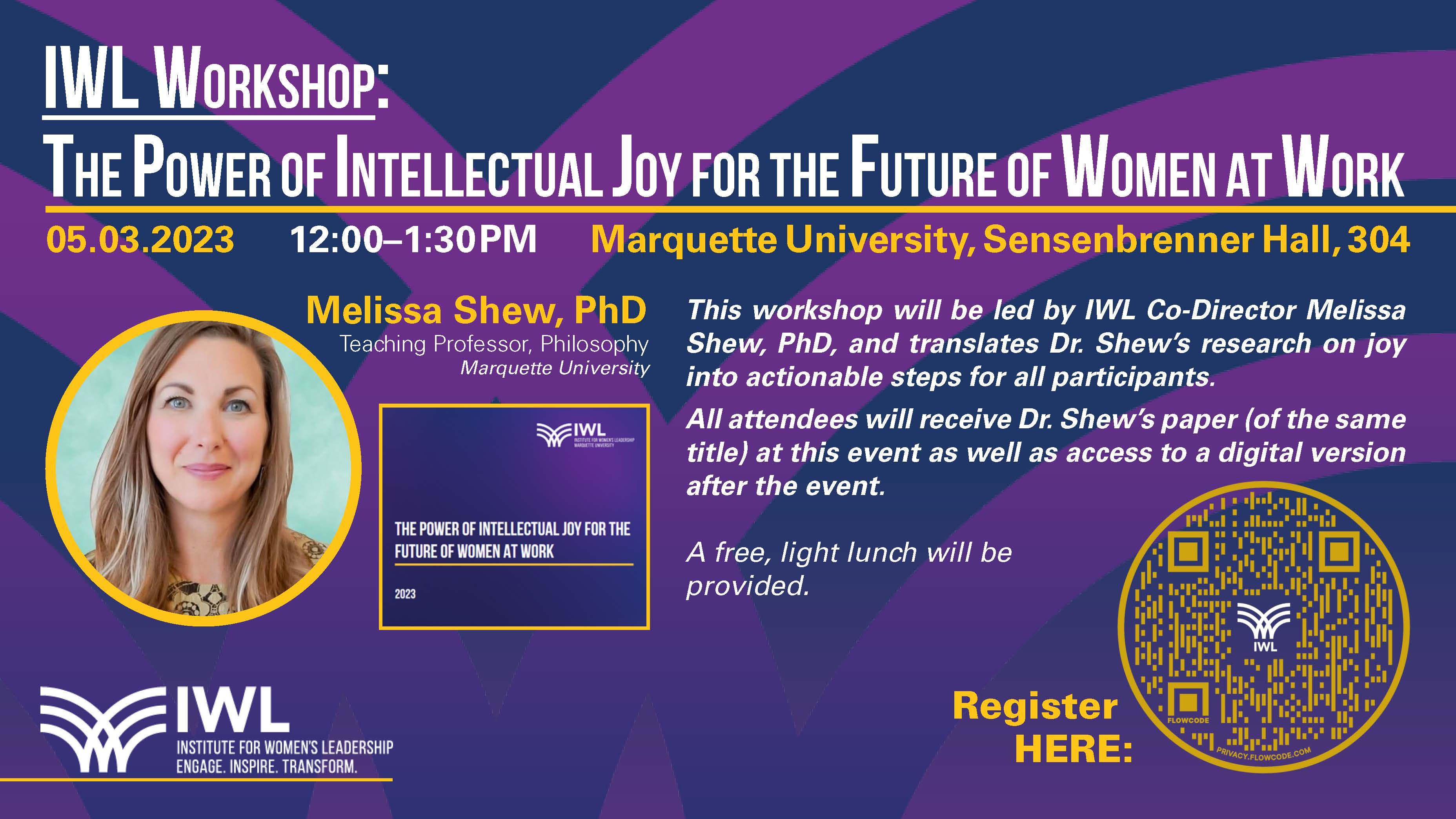 The Power of Intellectual Joy for the Future of Women at Work Wednesday, May 3, 2023 | 12:00–1:30 p.m. | Sensenbrenner Hall, 304