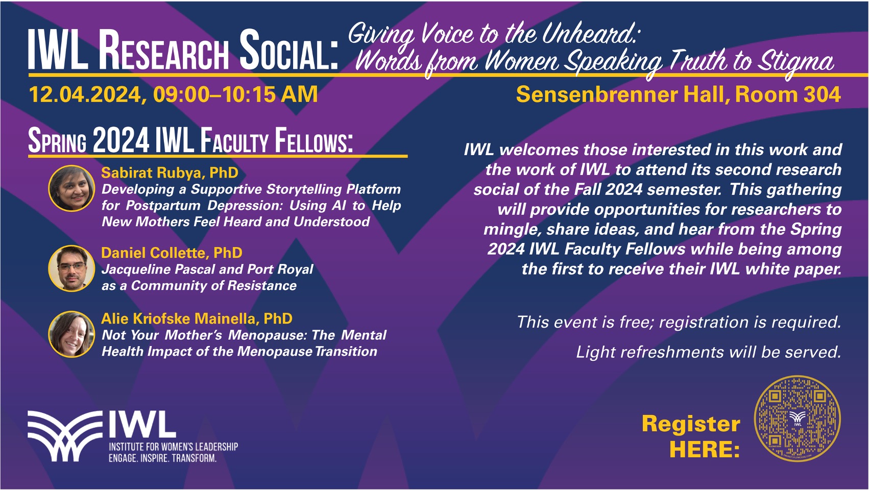 IWL Research Social featuring Spring 2024 IWL Faculty Fellows