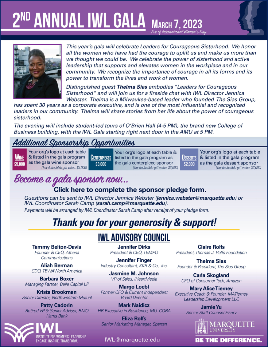 - The IWL INSPIRE AWARD for Transformational Campus Leadership celebrates a Marquette University faculty/staff member whose transformational leadership has improved the lives and careers of women on campus and/or in the community.